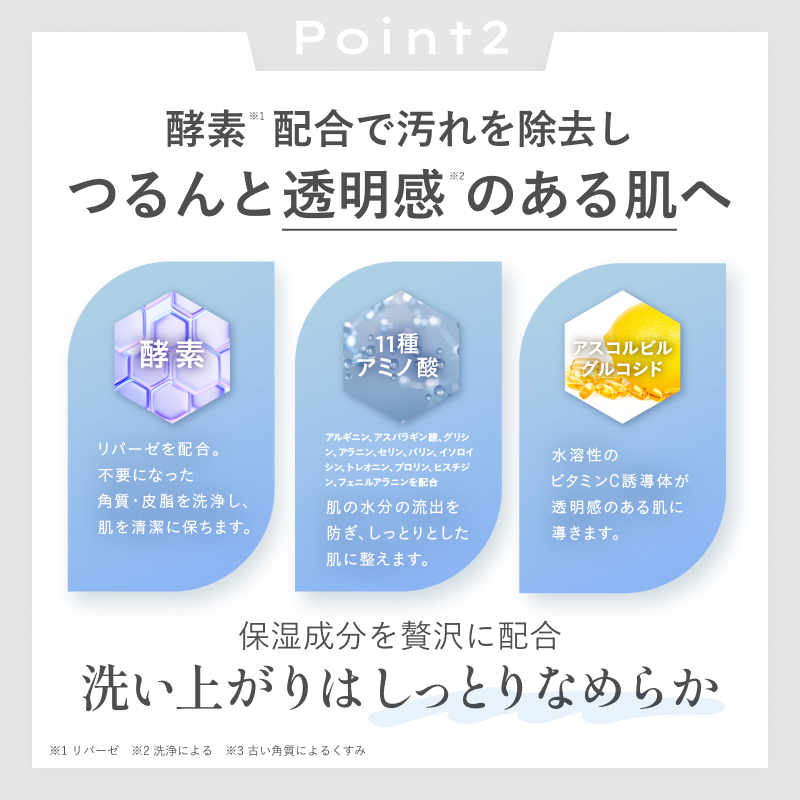リパーゼを配合 不要になった皮脂を洗浄し、肌を清潔に保ちます。