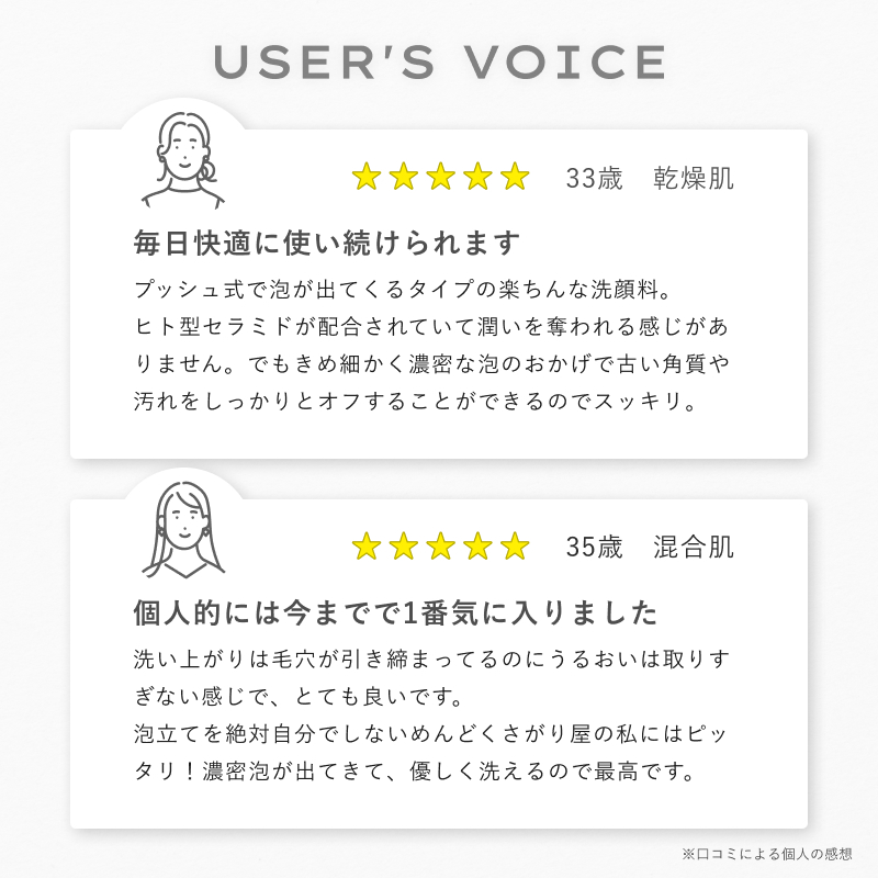 ワンプッシュでムース泡が出てくる角質クリア酵素配合の洗顔フォーム。 普段落としきれない角質と汚れを分解し、しっかり落としながら、必要な潤いは肌に残してくれます。 手のひらたっぷりに泡を乗せ、肌のくすみを一掃し、透明感あふれる肌に仕上げてくれます。