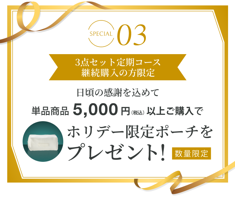 - 対象:2025年10月30日時点で「スキンケアセット3点セット ベーシックコース」定期コース会員のお客様。